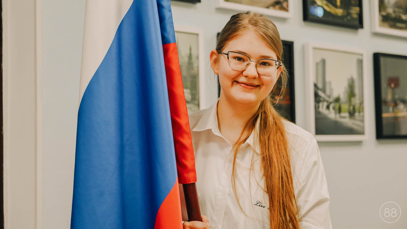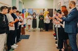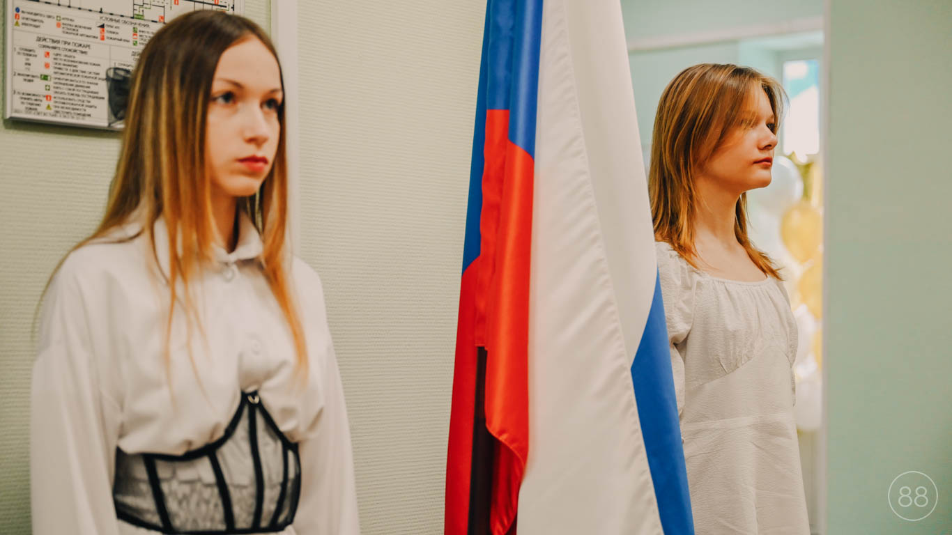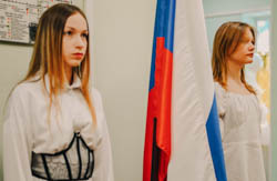 Торжественное поднятие Государственного флага РФ учениками 9-А класса